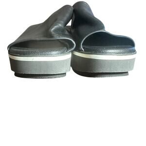 Robert Clergerie sandals, black leather platform slides, designer French sandals, size 7 slip-on, chunky platform shoes, minimal slide sandals, luxe summer shoes, fashion-forward sandals, made in France shoes, modernist leather shoes