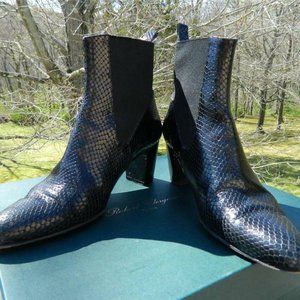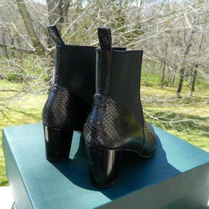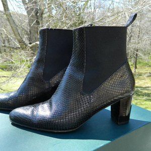 Robert Clergerie DALIA Black Leather Snake Skin & Elastane Pull On Ankle Boots 8