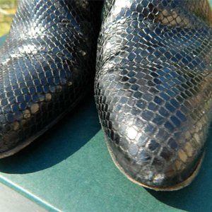Black Leather Snake Skin & Elastane Pull On Ankle Boots