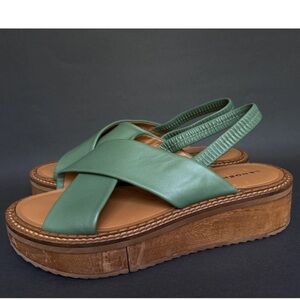 Robert Clergerie Freedom Platform Women’s Sz 8.5 Green Leather/Wood Sandals