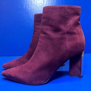 Robert Clergerie Katia Suede Leather Sculptural Heels in Aubergine FR37/US6.5
