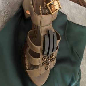 Robert Clergerie "PISE " OLIVE SANDALS 8.5 M WOOD
