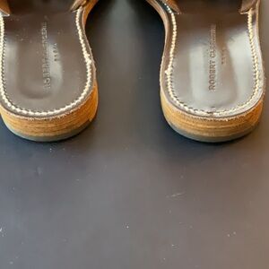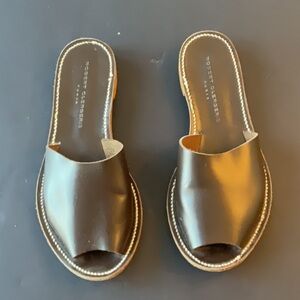 Robert Clergerie Paris leather peep toe slides dark brown size 8