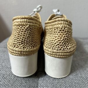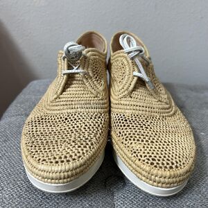 Robert Clergerie Shoes Womens Size 38 Raffia Woven Wedge Oxford Lace Up Tan