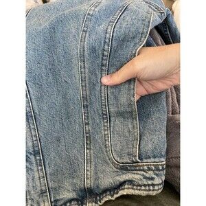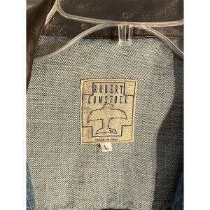 Robert Comstock Denim Jacket Mens Large Blue Leather Collar Made in Italy