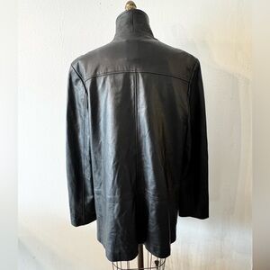 Elevate your style with this sleek black leather jacket. Perfect for any occasion, this jacket offers both comfort and sophistication. Robert Comstock Expedition leather jacket. Size Large. 100% leather outer. Polyester lining. Pre owned some signs of wear. Small rip on front one side, see photo for details