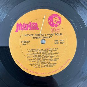 Robert Goulet: I Never Did As I Was Told. MGM Record Corporation. Produced by Ernie Altschuler. Good condition, no noticeable scratches. Has cover, has sleeve. Sold and shipped from a clean, smoke-free home.