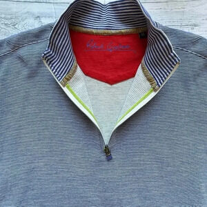 Robert Graham 1/4 Zip Pullover Sweater Men's Large Blue & White Stripe
