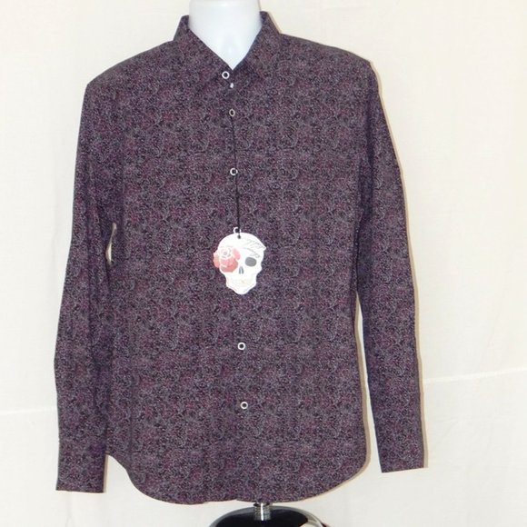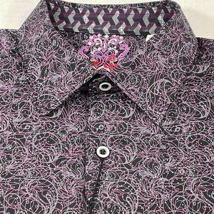 Robert Graham BRIGGS Men’s Button Front Long Sleeve Shirt Purple Black Large NWT