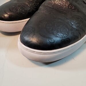 Robert Graham Baxter Mens Black Leather Low Top Slip-On Shoes RGS5137 EUC