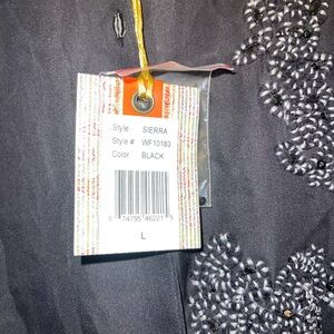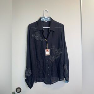 Black button-down shirt with intricate embellishments. Perfect for casual elegance.