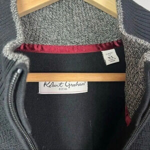 Robert Graham Black Textured Knit Quarter Zip Pullover Sweater XL