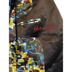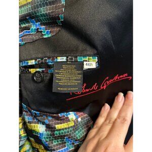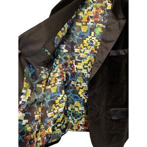 Robert Graham Black Velvet Blazer Jacket 44R With Multicolor Mosaic Lining