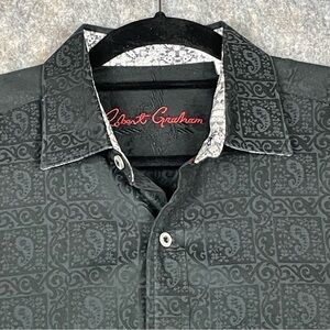 Robert Graham Black on Black Windsor Paisley Jacquard Flip Cuff Classic Shirt M