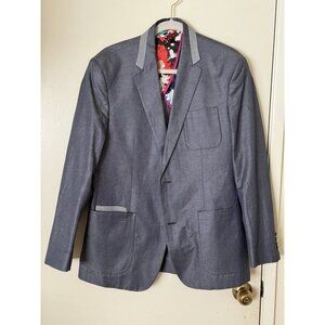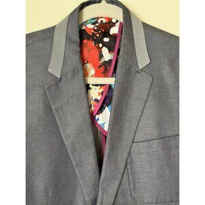 Robert Graham Blazer Men's 40 Gray Blue Cotton Three-Button Floral Lined
