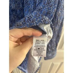 Excellent condition. Blue and brown mosaic patter, collared, long sleeve button down. Contrast cuff.