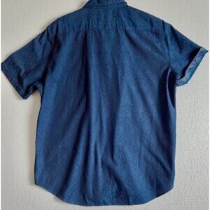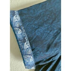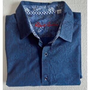 Robert Graham Blue Damask Floral Jacquard Short Sleeve Button-Up Shirt Large