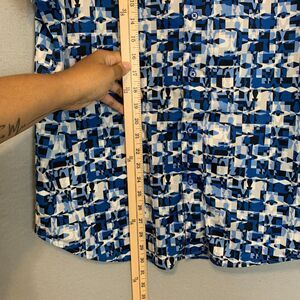 Robert Graham men’s short-sleeve button-up shirt in size Large, featuring a bold blue geometric abstract print. This signature Robert Graham style pairs modern art-inspired design with crisp tailoring — perfect for casual Fridays, resort wear, concerts, or upcoming holiday gatherings.