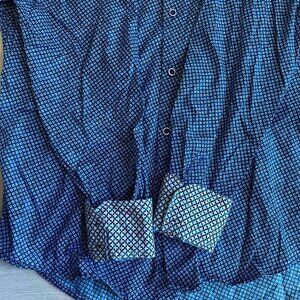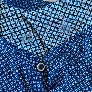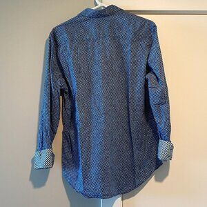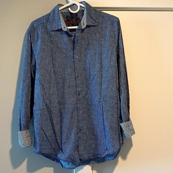 Robert Graham Blue Geometric Print - Style: HomeDale Men's Shirt. In excellent pre-owned condition with the 2 additional buttons still attached.