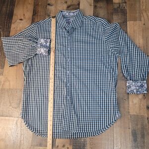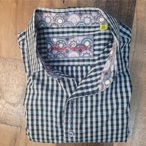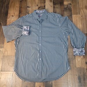Robert Graham Blue Gingham Check Shirt Mens XL Long Sleeve Button Up