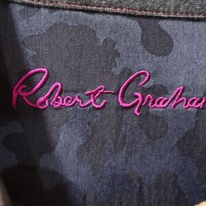 Robert Graham Blue Gray Pin Stripe Camo Flip Cuff Sleeves Button Down Shirt 2X