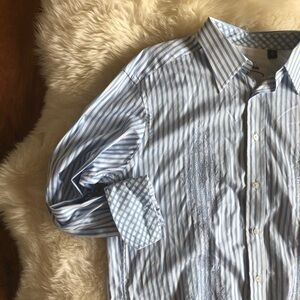 Robert Graham Blue Stripe Embroidered Shirt Mens M