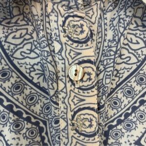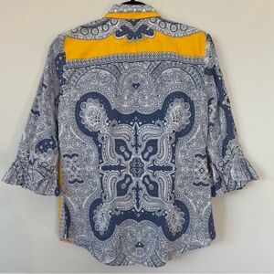 Robert Graham Blue Yellow Silver Embroidered Paisley Floral Button Up Blouse S
