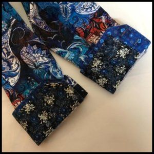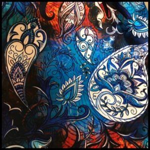 Vibrant paisley design. Rich blue and brown tones. Perfect for formal occasions.
