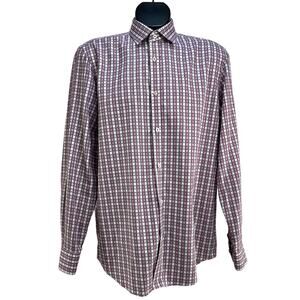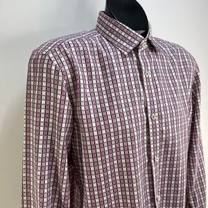 Robert Graham Button Down Shirt Check Grid Print White Purple