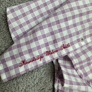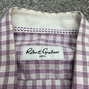 Robert Graham Button Down Shirt Men 16 Large Purple White Check Cotton Flip Cuff