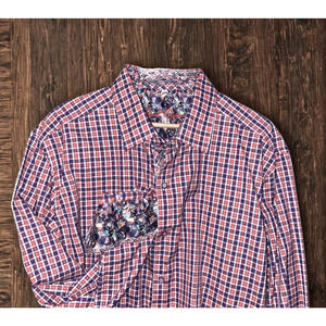 Robert Graham Button Front Shirt Textured Geometric Flip Cuff Men's Sz. 2XL EUC