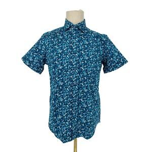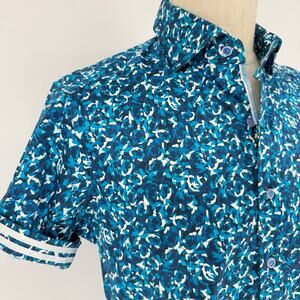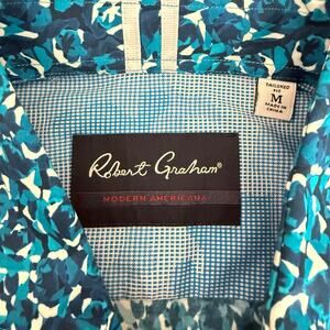 Robert Graham Casual Button Front Short Sleeve Shirt MICHAELS Multi Blue Geometric Rose Floral Print M