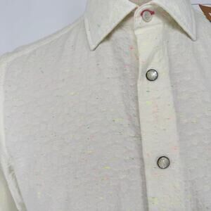 Robert Graham Casual Button Front Short Sleeve Shirt ROMANO Neon Rainbow White Crinkle, Made in Italy M
