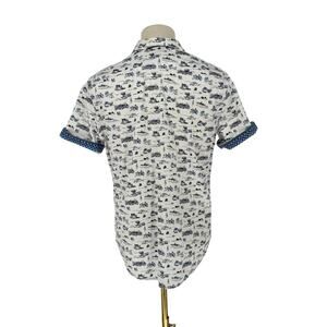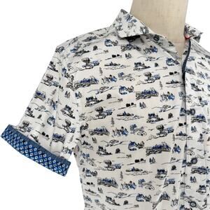 Robert Graham Casual Button Front Short Sleeve Shirt THROTTLE Classic Car Countryside chinoiserie Novelty Print M