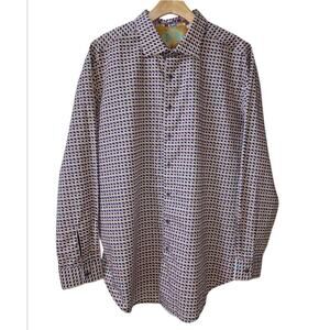 Robert Graham Button Up Geometric Flip Cuff Embroidered Shirt Men 2XL Multi Bold