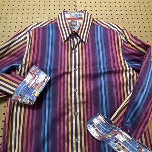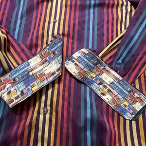 Robert Graham Button Up Shirt Mens Medium Multicolor Train Subway Cuff Tailored