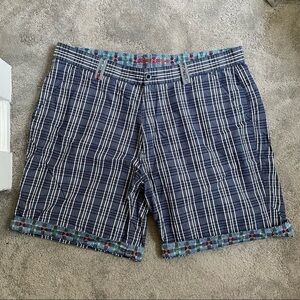 Robert Graham Casual Flip Cuffs Gray White Plaid Check Preppy Shorts EUC Size 40