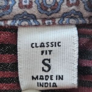 This shirt is made of machine washable cotton with woven fabric and embroidered accents. It's easy to care for and suitable for all seasons. The shirt is available in size Small and has a regular fit. Add this classic themed shirt to your collection today. Measures 21.5" From Pit to Pit / Measures 27.5" from shoulder to hem & Sleeve length of 24"