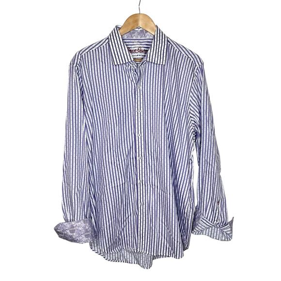Robert Graham Classic Fit Striped Flip Cuff Button Up Shirt Mens XL Purple