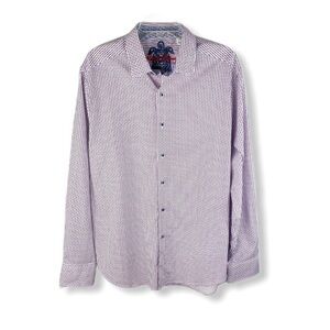 Robert Graham Breen Classic Fit Button Down / Button Up Allover Houndstooth Print. Red, White, & Blue Colors. Long Sleeves. Lightweight & Loose. Cute & Comfy. Knowledge Wisdom Truth Woven Embroidery. NWT / New with Tags. No Stains or Rips. Great Condition.