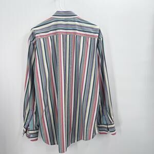 Robert Graham Colorful Striped Textured Embroidered Button Up Dress Shirt XL
