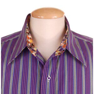 Robert Graham Cotton Embroidered LS Shirt Size XL Mens Cotton Purple Stripe