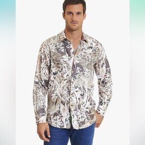 Robert Graham's Desert Bones shirt features a collage of bones with accent trim at the inside collar and button placket. Classic Fit.