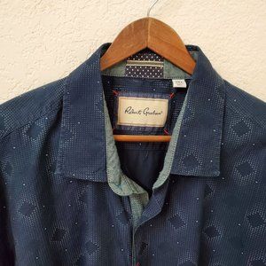Robert Graham / Men's / Collared / button up shirt / diamond pattern / contrast cuff / contrast collar / shirt tail hem / knowledge wisdom truth / pre-owned / gently worn / cleaned / sanitized / smoke free home