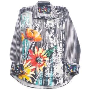 Robert Graham Fields Of Gold Stretch Long Sleeve Shirt Orange Floral Men's Large