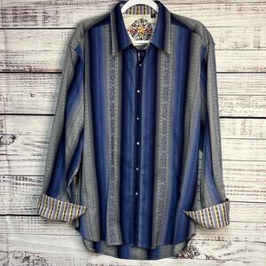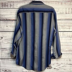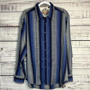 Robert Graham Flip Cuff Button Down Men’s XL Stripe Blue Gray Pattern Cotton
