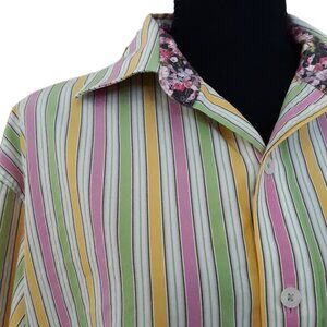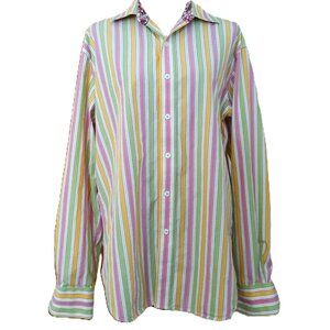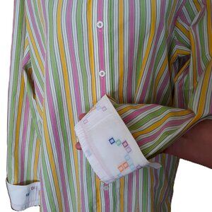 Robert Graham Flip Cuff Button Down Shirt Pastel Stripes Large