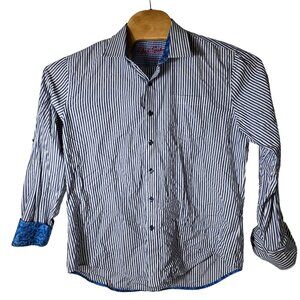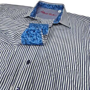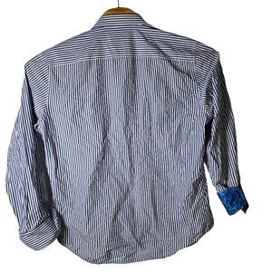 Robert Graham Flip Cuff Dress Shirt Large Men's Long Sleeve Blue White Striped