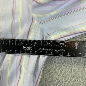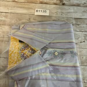 Robert Graham Flip Cuff Shirt Womens Small Blue Embroidered Floral Striped Top