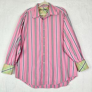 Robert Graham Flip Cuff Stripe Button Up Shirt Size 2XL Cotton Pink